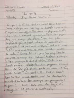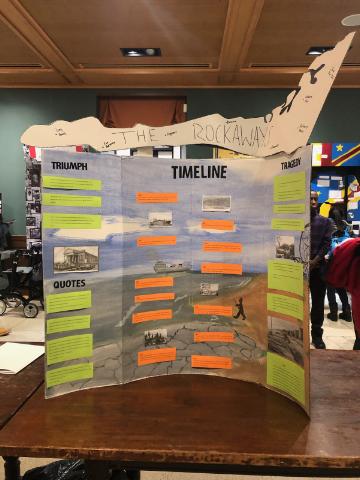 Students who participated in the Urban Renewal Learning Expedition enter high school invested in their community. After completing this Expedition, some students showed original thinking by choosing to develop their scholarship by continuing to focus their work on local issues. For example, when current 10th graders were asked to research an example of a Triumph & Tragedy for National History Day, this group decided to focus on the history of the Rockaways and how it continues to affect their community in the present. Because of the Service Learning they participated in as 8th-grade students, as 10th-graders, they choose to deepen their understanding of how Robert Moses had influenced their community. They used the research skills and understanding of local issues that they began to develop in the 8th grade to support their work as high school students. This project demonstrates our students' growth over time in creating authentic work that examines a real-world issue through multiple perspectives. The image below was taken when these students shared their research to an authentic audience at the City Museum of New York. Evidence 2: 6th Grade Wind Turbine