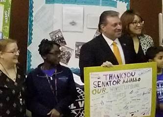 wind turbine. In past school years, students learned about aerodynamic forces, specifically lift and drag forces, by completing calculations on worksheets. Students did not develop a deeper understanding of the topic, so we designed this hands-on Learning Expedition to support our students in their learning. During this scientific investigation, students could visibly see the gears turn and the rotor blades spin when “wind” was directed at hub level to the turbine. They knew electricity was pushing through the wires because they measured the amount of voltage on the voltmeters. Students not only developed their understanding of aerodynamic forces, but also participated in an investigation that advocates for the public good. This change from classroom calculation activities to a hands-on Learning Expedition increased our students' content knowledge by engaging them in authentic work that could benefit their community. Our expert was Senator Joseph P. Addabbo, Jr., who