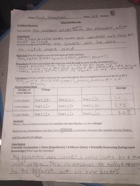 case study about renewable wind energy and conducted a scientific investigation